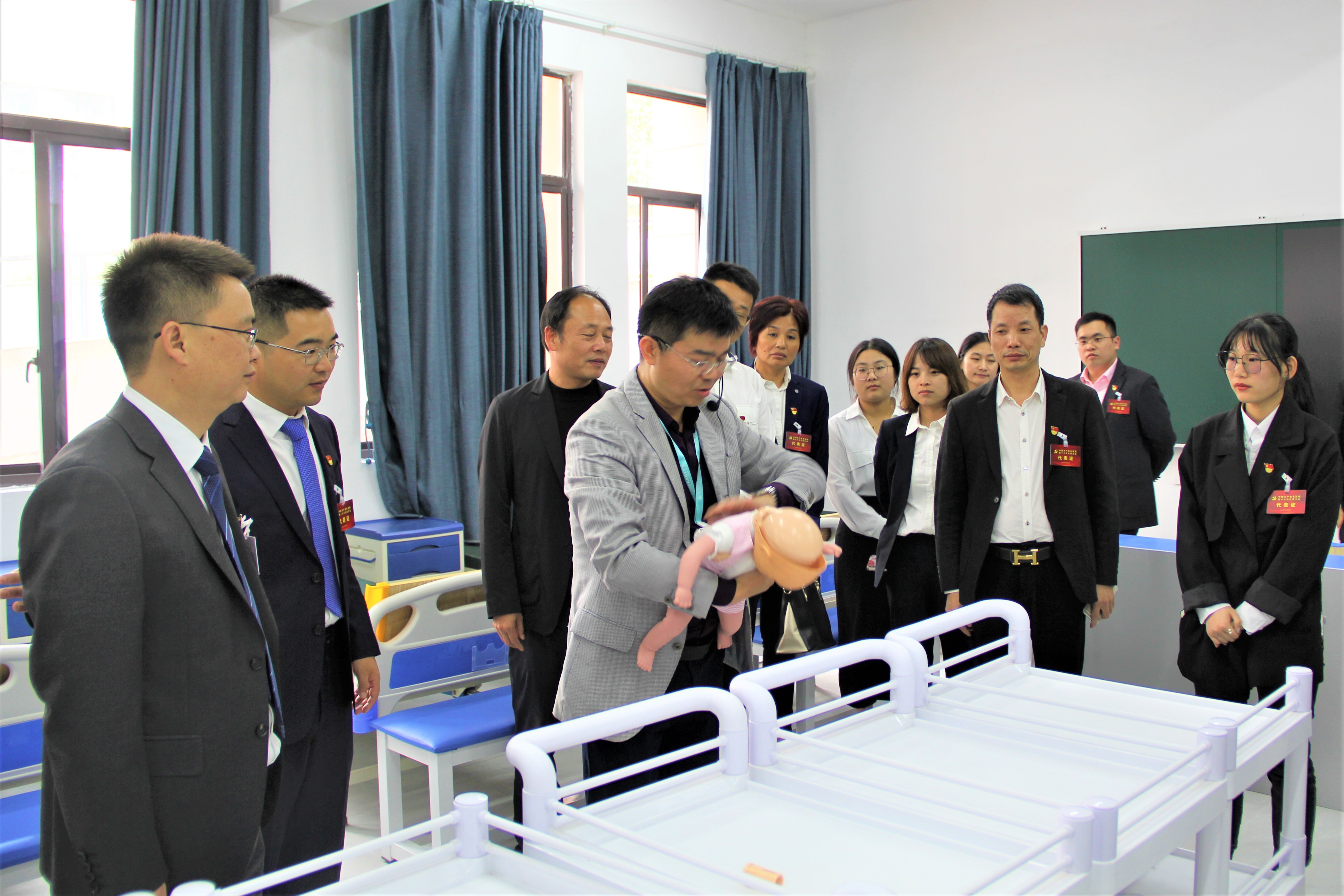 之后,党代表一行考察了位于教学楼二楼的护理实训室,罗校长为代表们介绍了实训室的配件设施及功能。在这里,护理专业的学生能够通过假人模拟训练,熟练掌握护理及急救技能。