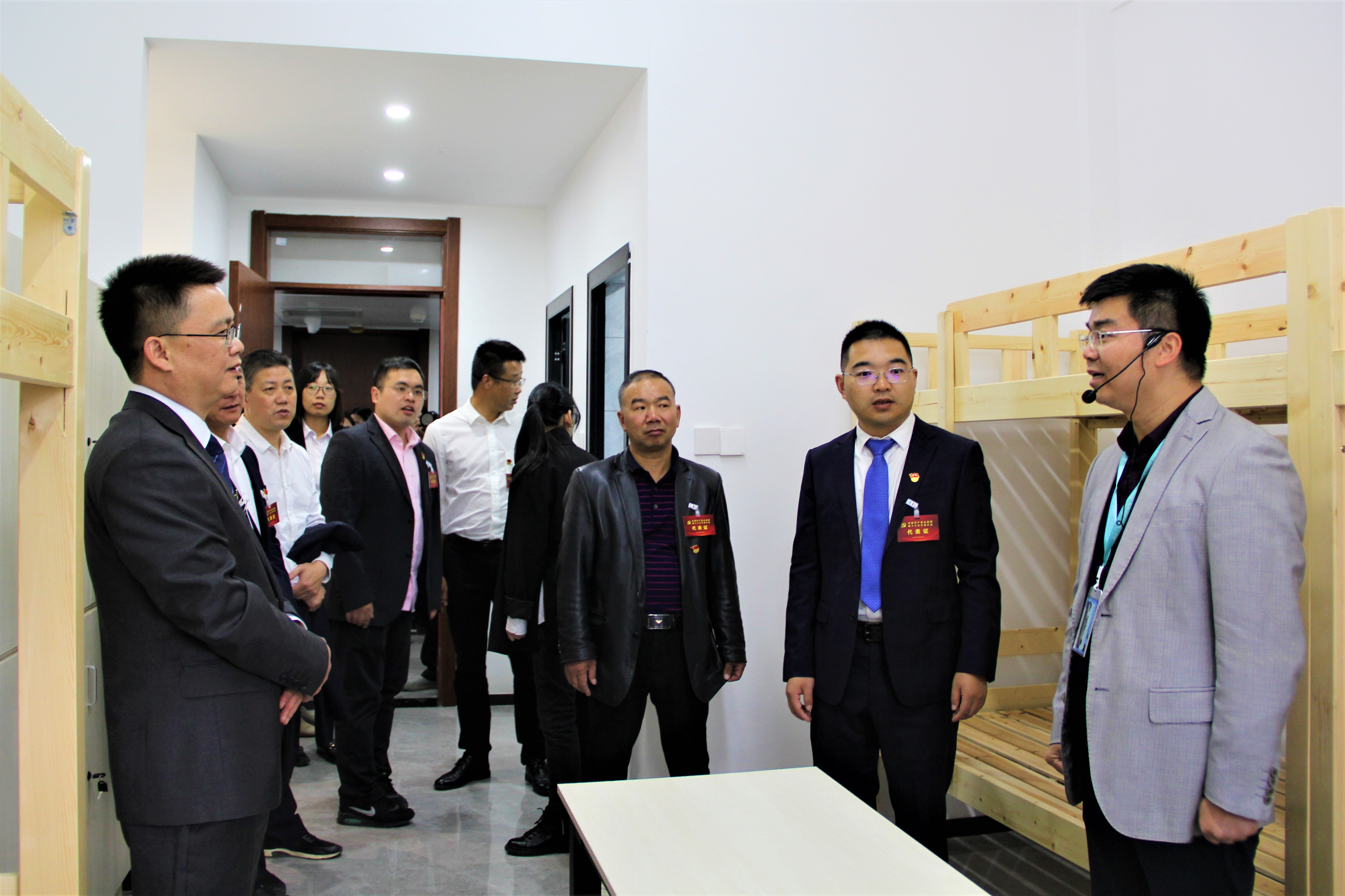 最后,党代表一行参观了学生宿舍和食堂。我校的每间宿舍都布置了独立的空调和洗衣机,同时做到了洗浴间的干湿分离,充分照顾到了学生的生活体验。
