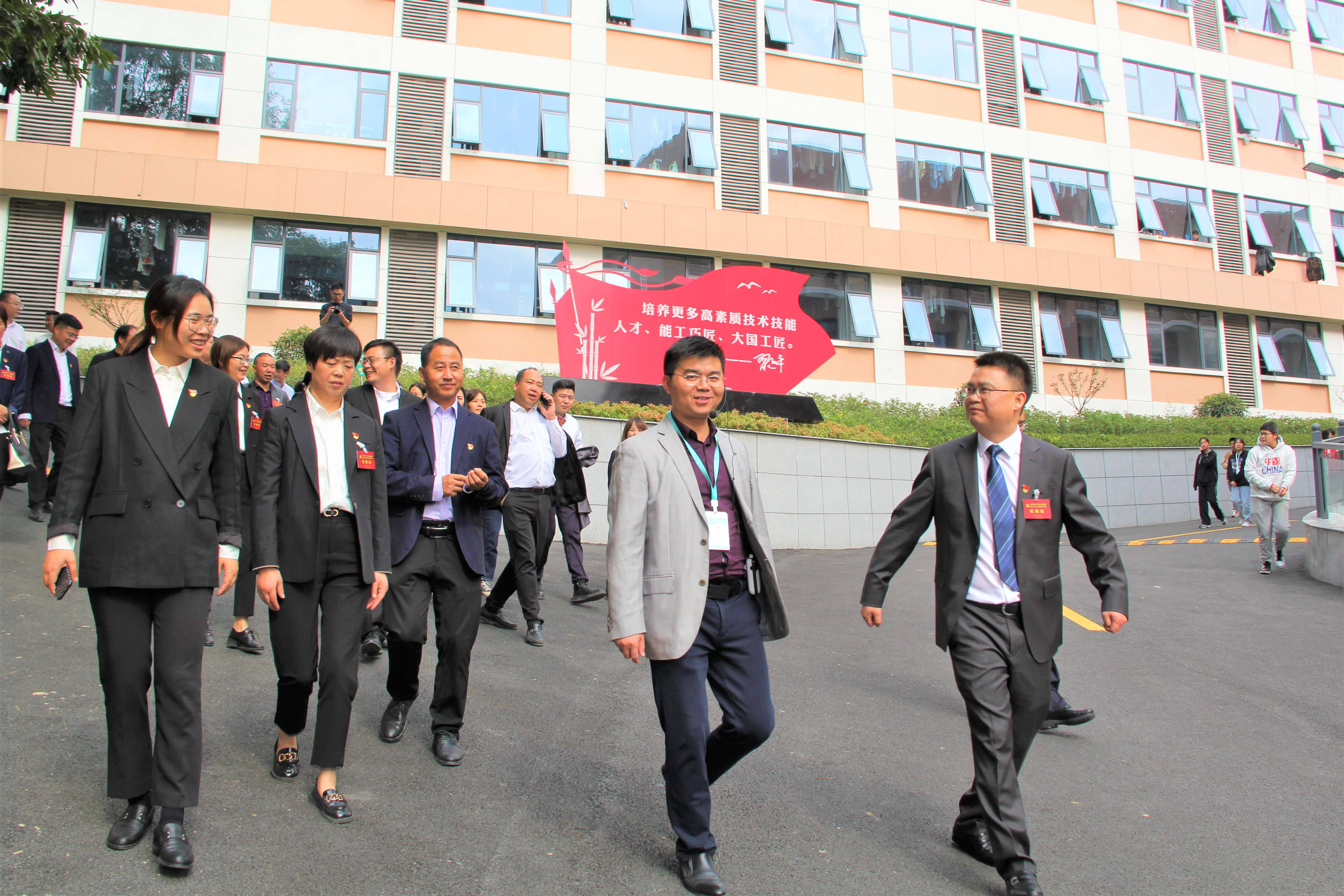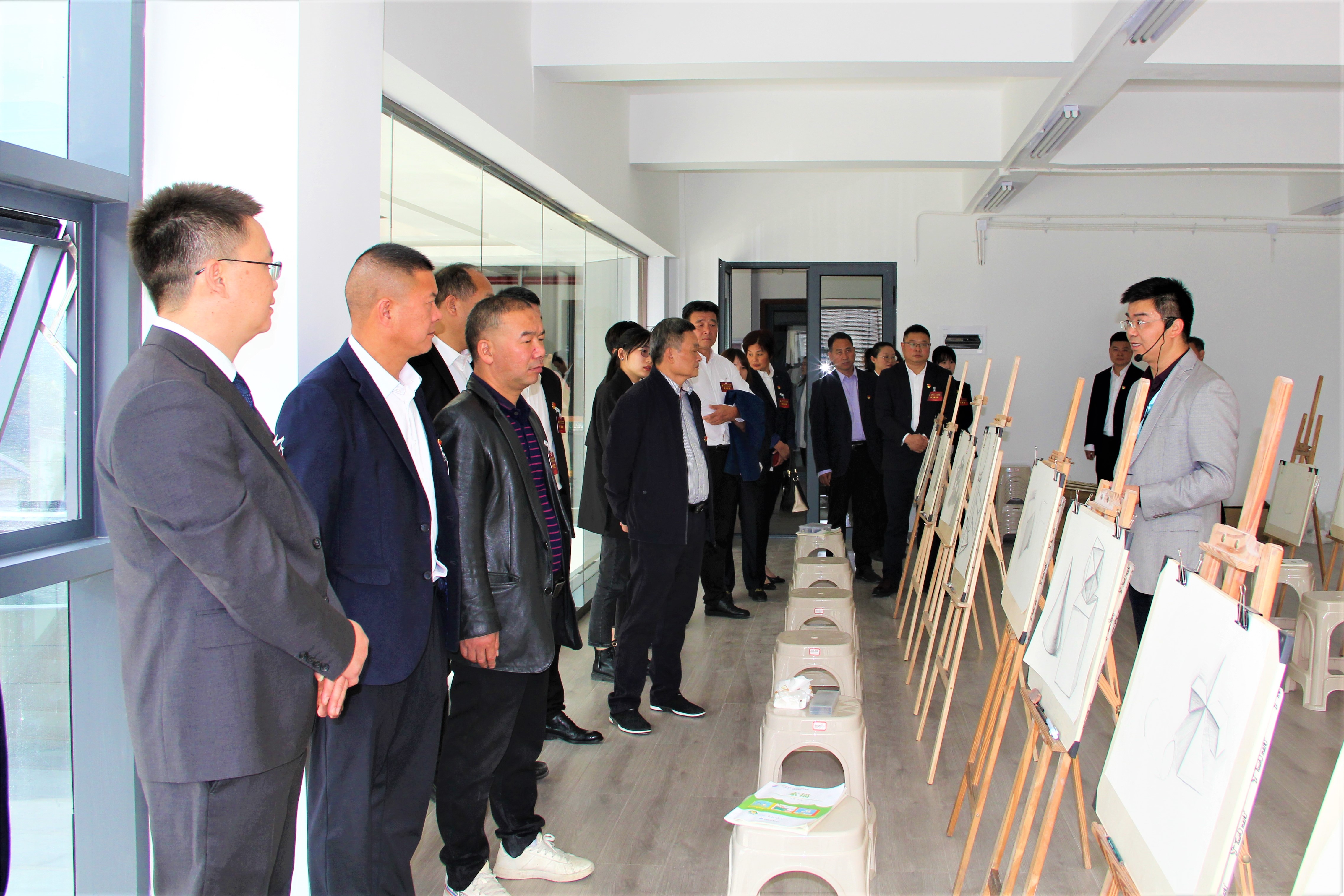 党代表一行进入学生事务中心,参观了美术阳光室,并在罗校长的介绍下,详细了解我校的专业特色和学生发展前景。